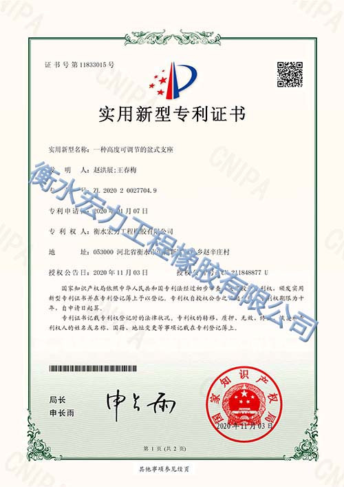 衡水宏力工程橡膠有限公司坐落于大廣高速西側、106國道南側的趙辛經濟開發區。公司成立于2002年,設有辦公室、供銷部、生產技術部、財務部、質檢部五個職能部門和硫化車間、機加工車間、伸縮縫車間、煉膠車間、組裝車間五個生產車間班組,生產設備精良、檢測設備齊全。在屢次國家、省部級和生產許可證監督的質量抽查中,產品檢驗合格,各項技術指標都能滿足相關標準的質量要求。